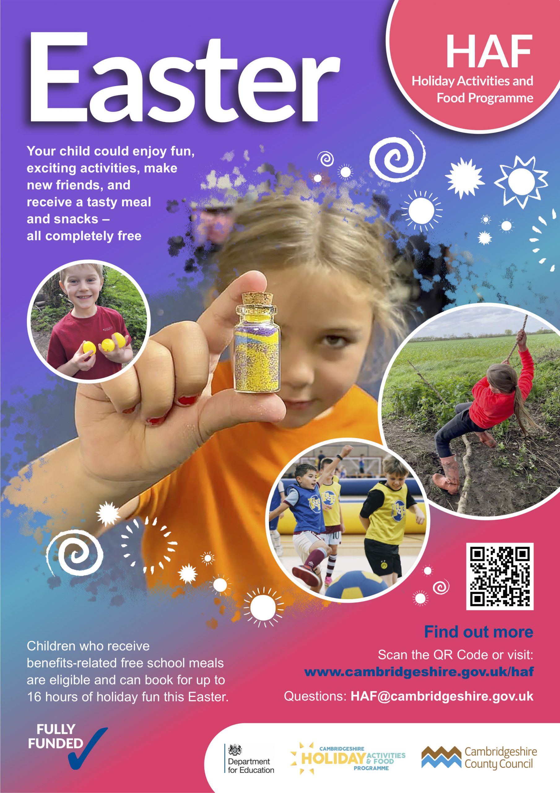 Find out more here: https://www.cambridgeshire.gov.uk/council/communities/support-with-the-cost-of-living/holiday-activities-and-food-programme